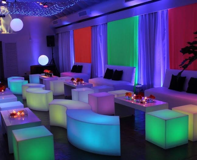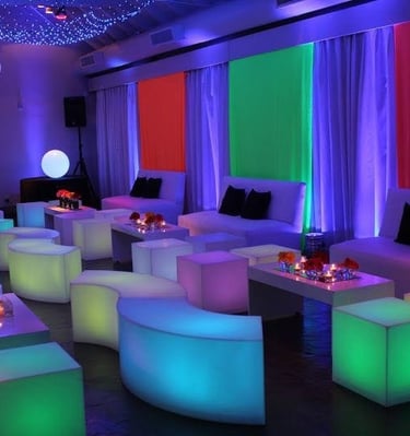 Location de mobilier événementiel haut de gamme et lumineux, pour créer des ambiances sophistiquées et mémorables.